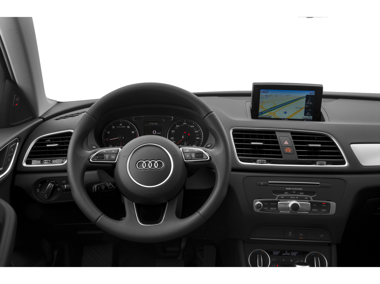 THIS VEHICLE INCLUDES THE FOLLOWING FEATURES AND OPTIONS: Audi MMI Navigation Plus Package (Audi Connect w/Online Services and Audi MMI Navigation Plus), Premium Plus Package (Aluminum Satellite Inlays, Audi Advanced Key, Audi Side Assist, Auto-Dimming Interior Mirror w/Compass, Full LED Headlights & LED Taillights, Gloss Aluminum Exterior Window Surrounds, Power Adjustable/Folding Heated Exterior Mirrors, Power Tailgate, and Stainless Steel Trunk Edge), Sport Package (3-Spoke Multifunction Sport Steering Wheel, Heated Front Sport Seats, and Wheels: 19 5-Double-Spoke Offroad Design), Sport Plus Package (DISC) (Black Optic Exterior Kit, Black Roof Rails, and Wheels: 19 10-Spk Des Matte Titanium Finish (DISC)), 10 Speakers, 3-Step Heated Front Bucket Seats, 4-Wheel Disc Brakes, ABS brakes, Air Conditioning, Alloy wheels, AM/FM radio: SiriusXM, Audi Guard All-Weather Floor Mats w/Q3 Logo, Automatic temperature control, Axle Ratio: TBD, Black HomeLink, Brake assist, Bumpers: body-color, CD player, Delay-off headlights, Driver door bin, Driver vanity mirror, Dual front impact airbags, Dual front side impact airbags, Electronic Stability Control, Exterior Parking Camera Rear, Four wheel independent suspension, Front anti-roll bar, Front Bucket Seats, Front Center Armrest, Front dual zone A/C, Front fog lights, Front reading lights, Fully automatic headlights, Heated door mirrors, Heated front seats, High intensity discharge headlights: Xenon plus, Illuminated entry, Leather Seating Surfaces, Leather Shift Knob, Leather steering wheel, Low tire pressure warning, Occupant sensing airbag, Outside temperature display, Overhead airbag, Overhead console, Panic alarm, Passenger door bin, Passenger vanity mirror, Power door mirrors, Power driver seat, Power moonroof, Power passenger seat, Power steering, Power windows, Radio data system, Radio: Audi Concert System w/AM/FM Radio, Rain sensing wipers, Rear anti-roll bar, Rear fog lights, Rear reading lights, Rear seat center armrest, Rear window defroster, Rear window wiper, Remote keyless entry, Roof rack: rails only, Security system, Speed control, Speed-sensing steering, Split folding rear seat, Spoiler, Steering wheel mounted audio controls, Tachometer, Telescoping steering wheel, Tilt steering wheel, Traction control, Trip computer, Turn signal indicator mirrors, Variably intermittent wipers, and Wheels: 18 5-Arm Turbine Design.