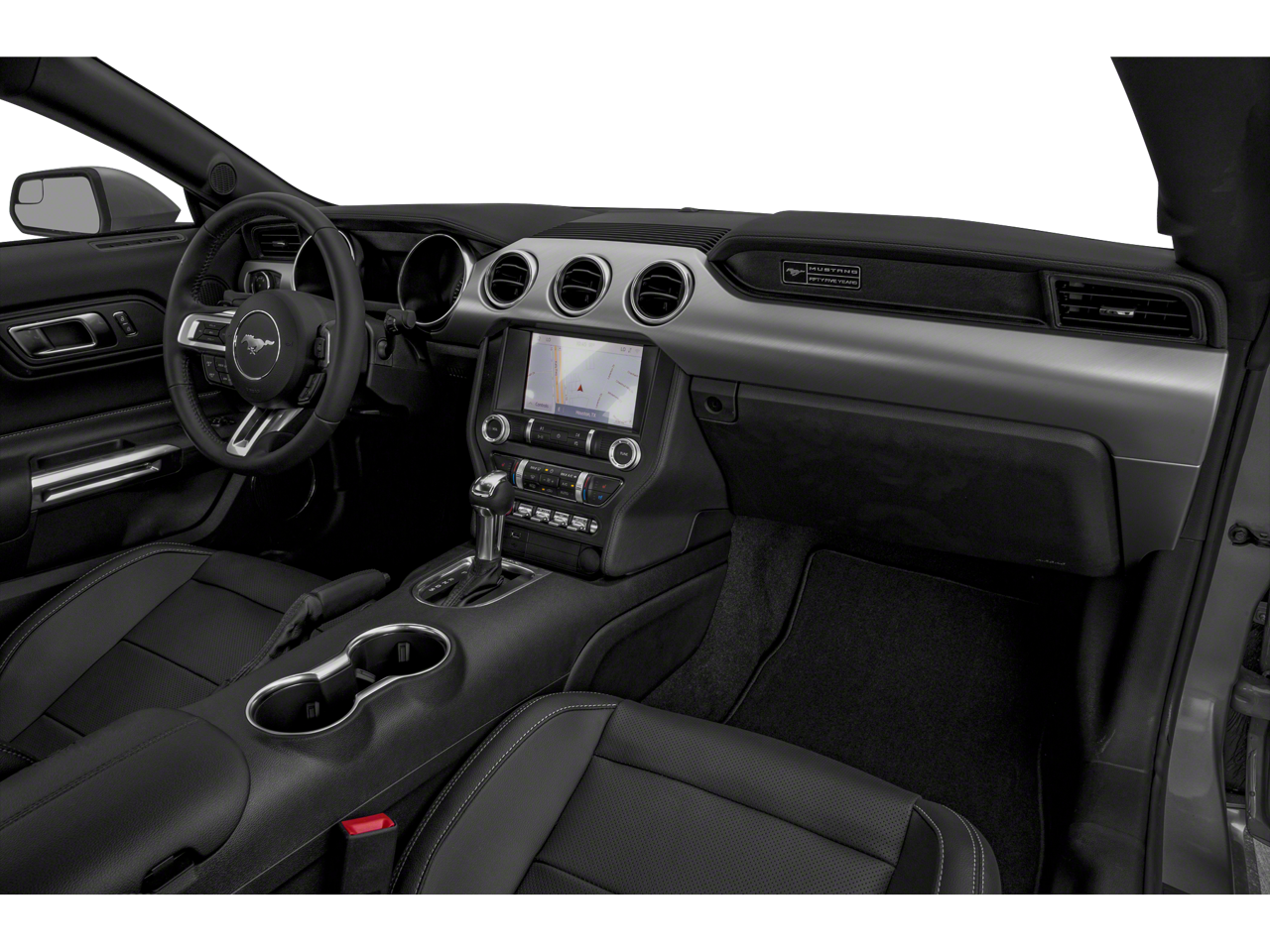 THIS VEHICLE INCLUDES THE FOLLOWING FEATURES AND OPTIONS: California Special Package (California Special Instrument Panel Applique Badge, Floor Mats w/Red Contrast Stitching, Leather-Trimmed Bucket Seats w/Miko Suede Inserts, Miko Suede Door Inserts w/Red Contrast Stitching, Pedestal Rear Spoiler, Unique Front Grilles w/Offset Tri-Bar Pony Logo, and Wheels: 19 x 8.5 Machined-Face Aluminum), Enhanced Security Package (Active Anti-Theft System and Wheel Locking Kit), Equipment Group 400A, Equipment Group 401A (Blind Spot Info System w/Cross-Traffic Alert, Leather Bucket Seats w/Color Accents, and Memory Driver Seat, Mirrors & Ambient Lighting), Ford Safe & Smart Package (Adaptive Cruise Control, Automatic High Beam, Lane-Keeping Alert, Pre-Collision Assist w/Pedestrian Detection, and Rain-Sensing Windshield Wipers), Premium Plus Package (12 LCD Digital Instrument Cluster w/MyColor, FordPass Connect, Heated Steering Wheel, and Voice-Activated Touch-Screen Navigation System), 3.55 TORSEN Limited Slip Rear-Axle, 4-Wheel Disc Brakes, 9 Speakers, ABS brakes, Active Valve Performance Exhaust, Air Conditioning, Alloy wheels, AM/FM radio: SiriusXM, AM/FM Stereo, AppLink/Apple CarPlay and Android Auto, Auto-dimming Rear-View mirror, Automatic temperature control, Black GT, 5.0 & Pony Badges, Brake assist, Bumpers: body-color, Climate Controlled Heated/Cooled Front Seats, Compass, Delay-off headlights, Driver door bin, Driver vanity mirror, Dual front impact airbags, Dual front side impact airbags, Ebony Tape Stripe, Electronic Stability Control, Emergency communication system: 911 Assist, Exterior Parking Camera Rear, Four wheel independent suspension, Front anti-roll bar, Front Bucket Seats, Front Center Armrest, Front dual zone A/C, Front fog lights, Front reading lights, Fully automatic headlights, Garage door transmitter, HD Radio, Heated door mirrors, Heated front seats, Illuminated entry, Knee airbag, Leather Bucket Seats, Leather Shift Knob, Linked Graphite Aluminum Instrument Panel, Low tire pressure warning, Occupant sensing airbag, Outside temperature display, Overhead airbag, Overhead console, Panic alarm, Passenger door bin, Passenger vanity mirror, Power door mirrors, Power driver seat, Power passenger seat, Power steering, Power windows, Premium Floor Mats w/Accent Stitch, Radio data system, Radio: B&O Sound System by Bang & Olufsen, Rear anti-roll bar, Rear window defroster, Remote keyless entry, Security system, SiriusXM Radio, Speed control, Speed-sensing steering, Speed-Sensitive Wipers, Split folding rear seat, Spoiler, Steering wheel mounted audio controls, SYNC 3 Communications & Entertainment System, Tachometer, Telescoping steering wheel, Tilt steering wheel, Traction control, Trip computer, Turn signal indicator mirrors, Variably intermittent wipers, Ventilated front seats, Voltmeter, and Wheels: 18 x 8 Machined-Face Aluminum.