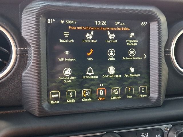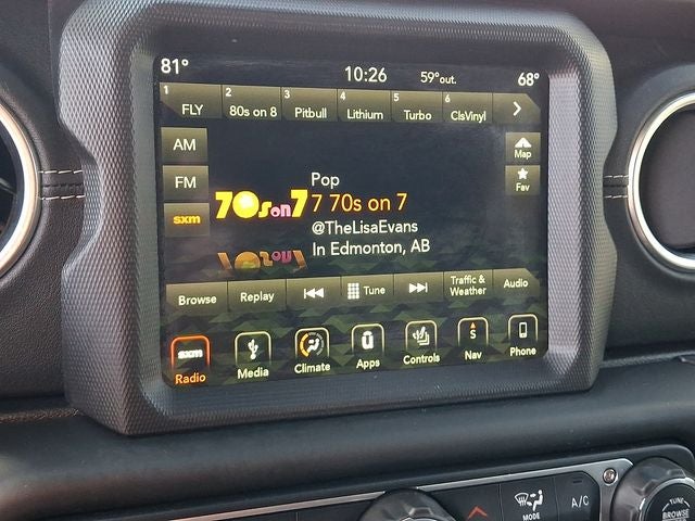 THIS VEHICLE INCLUDES THE FOLLOWING FEATURES AND OPTIONS: 8.4 Radio & Premium Audio Group (1-Year SiriusXM Guardian Trial, 4G LTE Wi-Fi Hot Spot, 5-Year SiriusXM Traffic Service, 5-Year SiriusXM Travel Link Service, 8.4 Touchscreen Display, Auto-Dimming Rear-View Mirror, Emergency/Assistance Call, For Details, Visit DriveUconnect.ca, GPS Navigation, HD Radio, Radio: Uconnect 4C Nav w/8.4 Display, SiriusXM Traffic Plus, and SiriusXM Travel Link), Advanced Safety Group (Advanced Brake Assist and Full Speed Forward Collision Warning Plus), Cold Weather Group (Heated Front Seats and Heated Steering Wheel), Dual Top Group (Premium Black Sunrider Soft Top w/Dual Top Group), LED Lighting Group (Daytime Running Lamps LED Accents, Front LED Fog Lamps, LED Reflector Headlamps, and LED Taillamps), Quick Order Package 24G, Safety Group (Blind Spot & Cross Path Detection and ParkSense Rear Park Assist System), 3.45 Rear Axle Ratio, 4-Wheel Disc Brakes, 8 Speakers, ABS brakes, Adaptive Cruise Control w/Stop, Air Conditioning, Alloy wheels, Alpine Premium Audio System, AM/FM radio: SiriusXM, Apple CarPlay/Android Auto, Automatic temperature control, Black 3-Piece Hard Top, Body Color 3-Piece Hard Top, Brake assist, Cloth Low-Back Bucket Seats, Compass, Dana M200 Rear Axle, Delay-off headlights, Driver door bin, Driver vanity mirror, Dual front impact airbags, Dual front side impact airbags, Electronic Stability Control, Freedom Panel Storage Bag, Front anti-roll bar, Front Bucket Seats, Front Center Armrest w/Storage, Front dual zone A/C, Front fog lights, Front reading lights, Fully automatic headlights, Garage door transmitter, Heated door mirrors, Heavy Duty Suspension w/Gas Shocks, Hill Descent Control, Illuminated entry, Integrated roll-over protection, Leather steering wheel, Leather Trimmed Seats w/Sahara Logo, Leather Wrapped Park Brake Handle, Leather Wrapped Shift Knob, Low tire pressure warning, No Soft Top, Non-Lock Fuel Cap w/o Discriminator, Occupant sensing airbag, Outside temperature display, Panic alarm, ParkView Rear Back-Up Camera, Passenger door bin, Passenger vanity mirror, Power door mirrors, Power steering, Power windows, Premium Wrapped I/P Bezels, Radio data system, Radio: Uconnect 4 w/7 Display, Rear anti-roll bar, Rear reading lights, Rear Window Defroster, Rear Window Wiper/Washer, Remote keyless entry, Remote Start System, Security system, Speed control, Split folding rear seat, Steering wheel mounted audio controls, Tachometer, Telescoping steering wheel, Tilt steering wheel, TIP Start, Traction control, Trip computer, Variably intermittent wipers, Voltmeter, Wheels: 18 x 7.5 Polished w/Gray Spokes, and Wheels: 18 x 7.5 Tech Gray Polished Face.