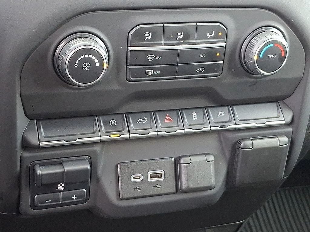 This Vehicle Includes the Following Options: Custom Convenience Package (Electric Rear-Window Defogger, EZ Lift Power Lock & Release Tailgate, LED Cargo Area Lighting, Remote Vehicle Starter System, and Theft Deterrent System (Unauthorized Entry)), Custom Value Package, Infotainment Package (4G LTE Wi-Fi Hot Spot Capable, Chevrolet Connected Access Capable, OnStar & Chevrolet Connected Services Capable, and SiriusXM Radio), Preferred Equipment Group 1CX (170 Amp Alternator, 3.5 Diagonal Monochromatic Display, Bluetooth® For Phone, Body Color Grille, Color-Keyed Carpeting Floor Covering, Compass, Deep-Tinted Glass, Electronic Cruise Control, Front Frame-Mounted Black Recovery Hooks, Front Rubberized Vinyl Floor Mats, Manual Tilt Wheel Steering Column, Power Door Locks, Power Front Windows w/Driver Express Up/Down, Power Front Windows w/Passenger Express Down, Power Rear Windows w/Express Down, Rear 60/40 Folding Bench Seat (Folds Up), Rear Rubberized-Vinyl Floor Mats, Remote Keyless Entry, and Standard Tailgate), Trailering Package (Hitch Guidance), 8-Speed Automatic, 4WD, Jet Black Cloth, 120-Volt Bed Mounted Power Outlet, 120-Volt Instrument Panel Power Outlet, 3.42 Rear Axle Ratio, 4-Wheel Disc Brakes, 40/20/40 Front Split Bench Seat, 6 Speakers, ABS brakes, Air Conditioning, Alloy wheels, AM/FM radio: SiriusXM, Apple CarPlay/Android Auto, Auto-Locking Rear Differential, Brake assist, Bumpers: body-color, Cloth Seat Trim, Delay-off headlights, Driver door bin, Driver vanity mirror, Dual front impact airbags, Dual front side impact airbags, Electronic Stability Control, Front anti-roll bar, Front Black Bowtie Emblem (LPO), Front Center Armrest w/Storage, Front License Plate Kit, Front reading lights, Front wheel independent suspension, Fully automatic headlights, Heated door mirrors, Heavy Duty Suspension, Illuminated entry, Integrated Trailer Brake Controller, Low tire pressure warning, Occupant sensing airbag, Outside temperature display, Overhead airbag, Overhead console, Panic alarm, Passenger door bin, Passenger vanity mirror, Polished Exhaust Tip, Power door mirrors, Power steering, Power windows, Premium audio system: Chevrolet Infotainment 3, Radio data system, Radio: Chevrolet Infotainment 3 System, Rear reading lights, Rear step bumper, Rear window defroster, Remote keyless entry, Security system, Single-Zone Manual/Semi-Automatic Air Conditioning, Speed control, Speed-sensing steering, Split folding rear seat, Tachometer, Tilt steering wheel, Traction control, Trip computer, Variably intermittent wipers, Voltmeter, and Wheels: 20 x 9 Bright Silver Painted Aluminum.