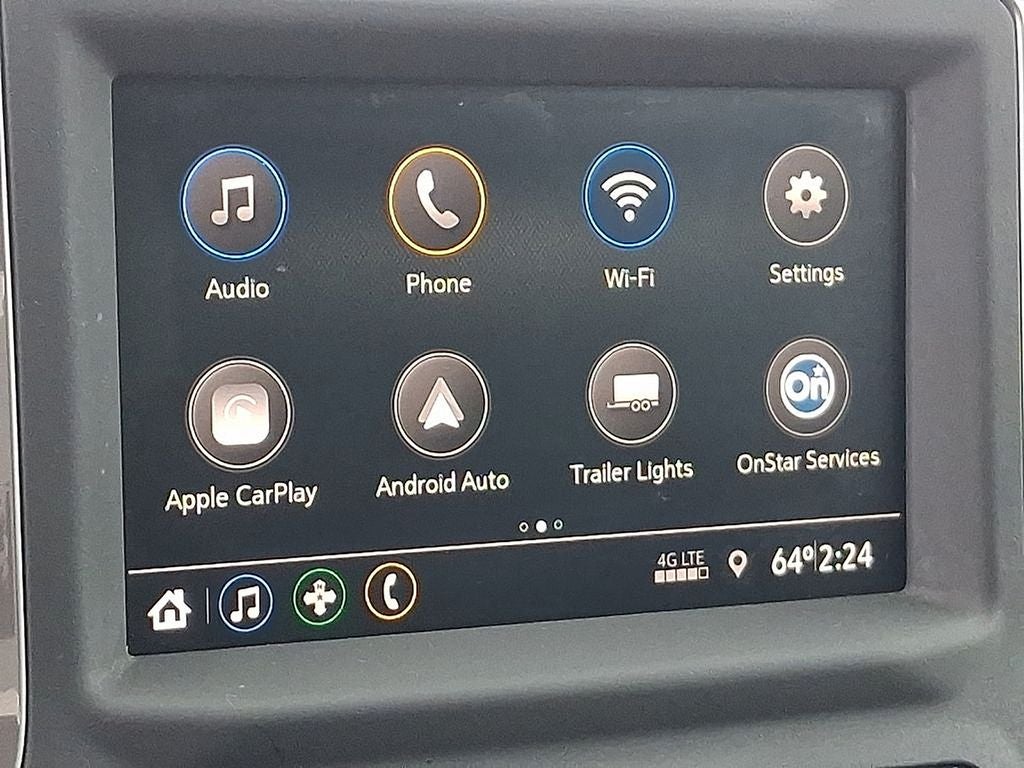 - Audio system, Chevrolet Infotainment 3 system 7" diagonal color touchscreen, AM/FM stereo. Additional features for compatible phones include: Bluetooth audio streaming for 2 active devices, voice command pass-through to phone, wired Apple CarPlay and Android Auto capable.