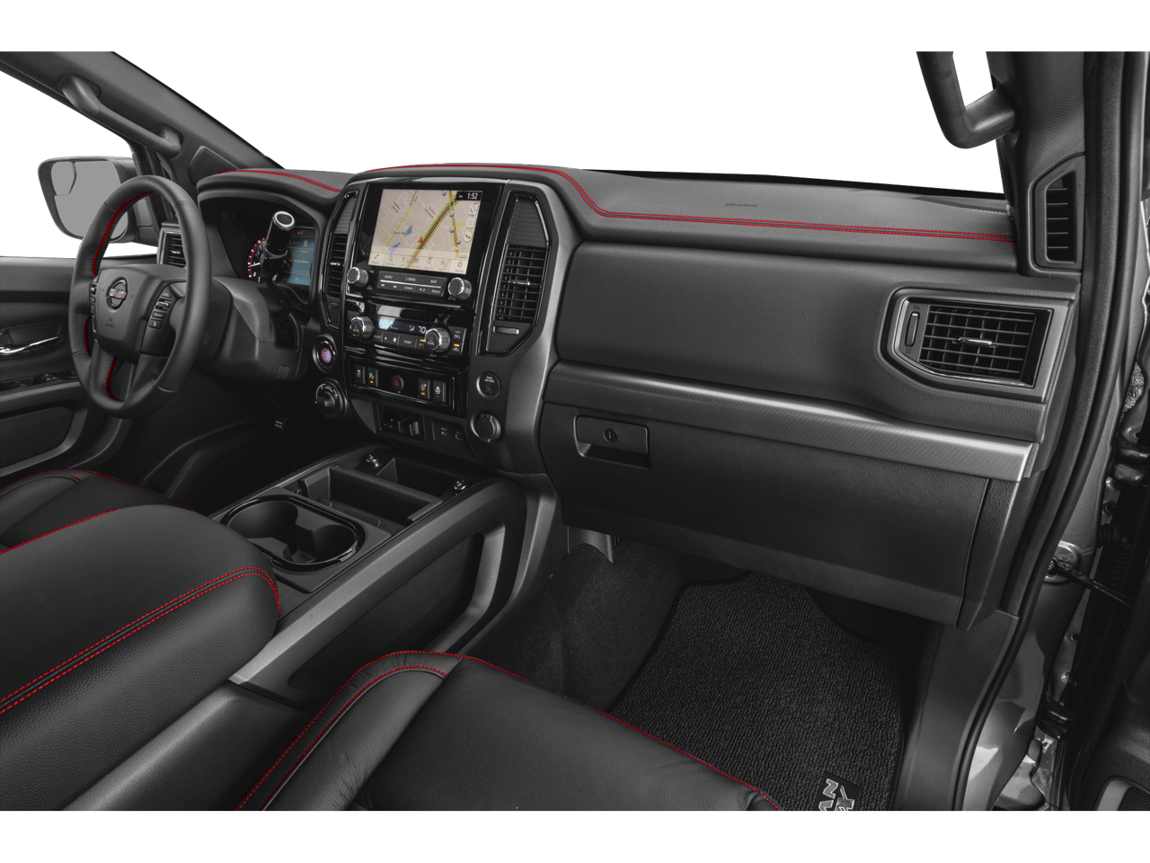 Inside, the Titan PRO-4X offers a premium driving experience. The Fender Premium Audio System with 12 speakers delivers a concert-quality sound, while the power driver's seat and leather-wrapped steering wheel ensure a comfortable and commanding ride. The Proximity Activation and Power Sliding Rear Window add to the truck's modern conveniences.
