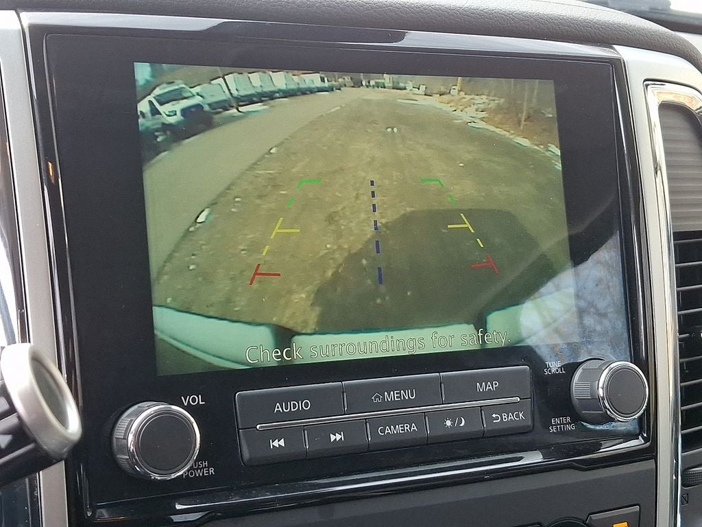 This Vehicle Includes the Following Options: Off Road Protection Package (All Season Floor Mats), SV Convenience Package (110V/12V Outlets In Back Of Center Console, 2 Illuminated USB-A Ports In Back Of Center Console, Auto-Dimming Rear-View Mirror, Chrome Interior Door Locks, Convex Spotter Mirror, Dedicated Cell Phone Holder, Dual Zone Automatic HVAC, Front & Rear Parking Sensors, Heated Front Captain's Chairs, Intelligent Key System, Leather-Wrapped Steering Wheel, Power Sliding Rear Window w/Defogger, Radio: NissanConnect w/Navigation, Rear HVAC Vents, Remote Engine Start on Key Fob, and Traffic Sign Recognition (TSR)), SV Tow Package (4-Pin/7-Pin Wiring Harness Connector (Rear Bumper), Heated Manually Extendable Tow Mirrors, Puddle Lamps, Receiver Hitch, Trailer Brake Controller, and Trailer Light Check Function On Key Fob), SV Utility Package (110V Outlet in Bed, Auto-Dimming Rearview Mirror w/UGDO, Electronic Locking Tailgate, Flat Floor Function w/Tie Down Hooks, LED Tailgate Area Illumination, LED Under Rail Bed Lighting, Rain Sensing Wipers, Rear Utility Bed Step, Spray-On Bedliner, Universal Garage Door Opener, and Utilitrack System w/4 Tie-Down Cleats), 4WD, 3.692 Axle Ratio, 4-Wheel Disc Brakes, 6 Speakers, ABS brakes, Air Conditioning, Alloy wheels, AM/FM radio: SiriusXM, Auto High-beam Headlights, Bed Assist Grip, Blind Spot Warning, Brake assist, Bumpers: chrome, Carpet Floor Mats (L95), Cloth Seat Trim, Driver door bin, Driver vanity mirror, Dual front impact airbags, Dual front side impact airbags, Electronic Stability Control, Emergency communication system: NissanConnect Services, Front anti-roll bar, Front Center Armrest w/Storage, Front reading lights, Front Split Bench Seat (40/20/40), Front wheel independent suspension, Fully automatic headlights, Heated door mirrors, Illuminated entry, Knee airbag, Loop Side Steps, Low tire pressure warning, NissanConnect featuring Apple CarPlay and Android Auto, Occupant sensing airbag, Outside temperature display, Overhead airbag, Overhead console, Panic alarm, Passenger door bin, Passenger vanity mirror, Power door mirrors, Power steering, Power windows, Radio data system, Radio: NissanConnect AM/FM, Rear anti-roll bar, Rear Bumper Step w/Electronic Tailgate Lock, Rear Parking Sensors, Rear seat center armrest, Rear Seat Entertainment (DISC), Rear step bumper, Rear window defroster, Remote keyless entry, Security system, Speed control, Speed-sensing steering, Speed-Sensitive Wipers, Splash Guards, Split folding rear seat, Steering wheel mounted audio controls, Tachometer, Telescoping steering wheel, Tilt steering wheel, Traction control, Trip computer, Variably intermittent wipers, Voltmeter, Wheels: 18 x 8 Silver Painted Alloy, and Wheels: 20 x 8 Chrome.