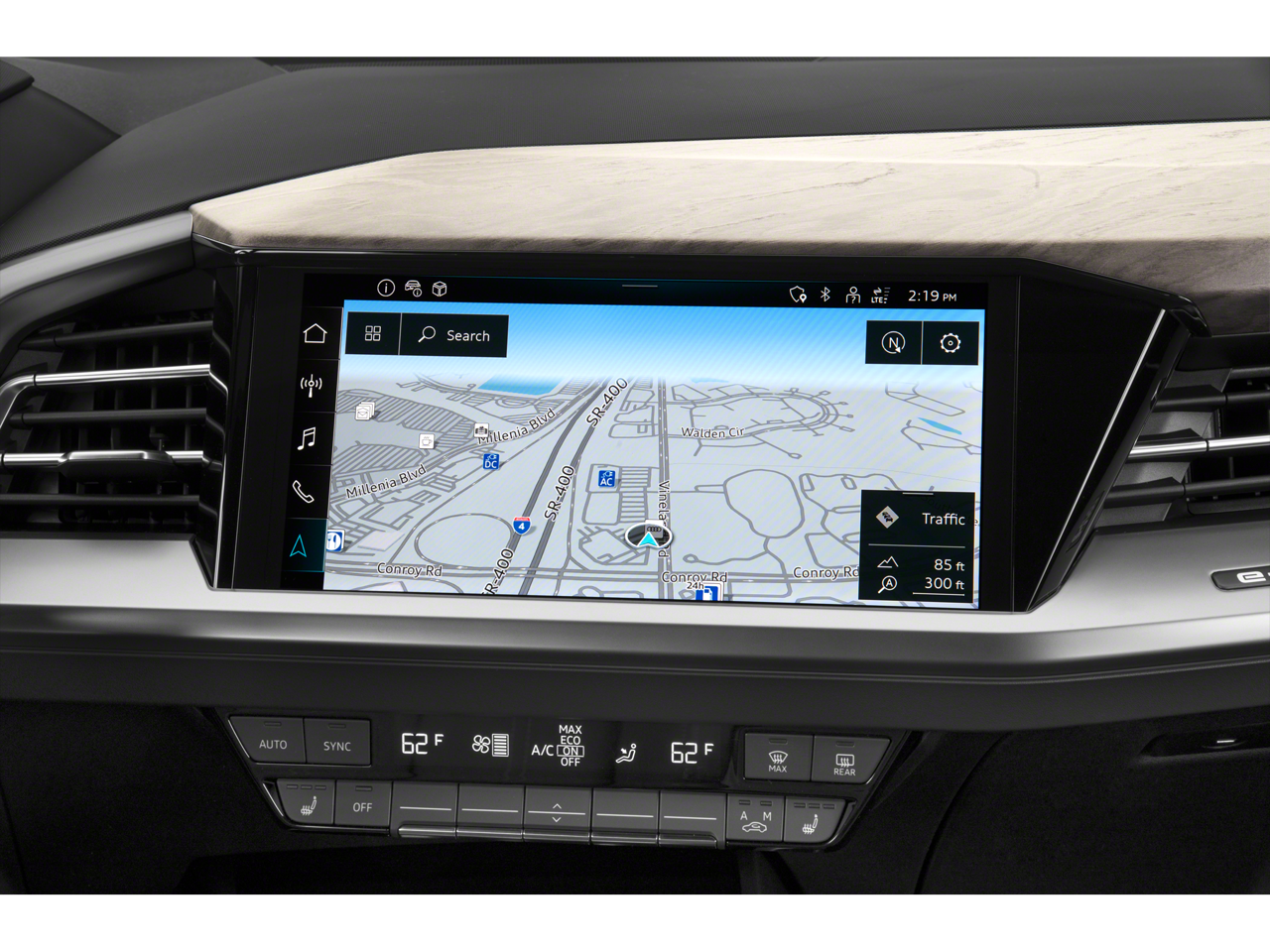 THIS VEHICLE INCLUDES THE FOLLOWING FEATURES AND OPTIONS: 8 Speakers, ABS brakes, Air Conditioning, Alloy wheels, Auto High-beam Headlights, Automatic temperature control, Brake assist, Bumpers: body-color, Delay-off headlights, Driver door bin, Driver vanity mirror, Dual front impact airbags, Dual front side impact airbags, Electronic Stability Control, Emergency communication system: Audi connect CARE, Exterior Parking Camera Rear, Four wheel independent suspension, Front anti-roll bar, Front Bucket Seats, Front Center Armrest, Front dual zone A/C, Front reading lights, Fully automatic headlights, Genuine wood dashboard insert, Heated door mirrors, Heated Front Seats, Heated front seats, Illuminated entry, Leather Seating Surfaces, Leather steering wheel, Low tire pressure warning, Occupant sensing airbag, Outside temperature display, Overhead airbag, Overhead console, Panic alarm, Passenger door bin, Passenger vanity mirror, Power door mirrors, Power driver seat, Power Liftgate, Power moonroof: Panoramic, Power steering, Power windows, Radio data system, Radio: Audi Sound System, Rain sensing wipers, Rear air conditioning, Rear anti-roll bar, Rear reading lights, Rear seat center armrest, Rear window defroster, Rear window wiper, Remote keyless entry, Security system, Speed control, Speed-sensing steering, Split folding rear seat, Spoiler, Steering wheel mounted audio controls, TBD Axle Ratio, Telescoping steering wheel, Tilt steering wheel, Traction control, Trip computer, Turn signal indicator mirrors, Variably intermittent wipers, and Wheels: 19 5-W-Spoke Aero Design.