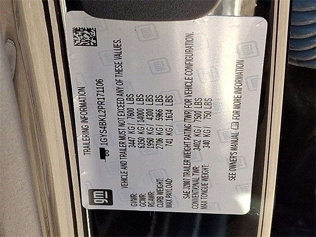 This Vehicle Includes the Following Options: Preferred Equipment Group 1SB (Adaptive Cruise Control, AKG Studio 19-Speaker Audio System, Automatic Seat Belt Tightening, Door Lock & Latch Shields, Enhanced Automatic Emergency Braking, Enhanced Automatic Parking Assist, Glass Breakage Sensor, Heated & Ventilated Driver & Front Passenger Seats, Lane Change Alert w/Side Blind Zone Alert, Mechanical Limited-Slip Differential, Power Panoramic Tilt-Sliding Sunroof, Rear Camera Mirror, Rear Camera Mirror Washer, Rear Cross Traffic Alert, Reconfigurable Full-Color Head-Up Display, Reverse Automatic Braking, Running Board Assist Steps, Theft-Deterrent Alarm System, Vehicle Inclination Sensor, and Vehicle Interior Movement Sensor), AWD, Black Leather, 16.9 Diagonal OLED Infotainment Screen, 19 Speakers, 2-Presets Memory For Driver Seat Adjuster, 3 Years of OnStar & Connected Services Plan, 3.23 Axle Ratio, 3rd row seats: split-bench, 4-Way Power Driver Lumbar Seat Adjuster, 4-Way Power Front Passenger Lumbar Seat Adjuster, 4-Wheel Disc Brakes, 8-Way Power Driver Seat Adjuster, 8-Way Power Front Passenger Seat Adjuster, ABS brakes, Air Conditioning, Alloy wheels, AM/FM radio: SiriusXM with 360L, Apple CarPlay/Android Auto, Audio memory, Auto High-beam Headlights, Auto tilt-away steering wheel, Auto-dimming door mirrors, Auto-dimming Rear-View mirror, Automatic temperature control, Brake assist, Bumpers: body-color, Compass, Delay-off headlights, Driver door bin, Driver vanity mirror, Dual front impact airbags, Dual front side impact airbags, Electronic Stability Control, Emergency communication system: OnStar and Cadillac connected services capable, Exterior Parking Camera Rear, Four wheel independent suspension, Front anti-roll bar, Front Bucket Seats, Front Center Armrest w/Storage, Front dual zone A/C, Front reading lights, Fully automatic headlights, Garage door transmitter, HD Radio, Heads-Up Display, Heated door mirrors, Heated Driver & Front Passenger Seats, Heated front seats, Heated rear seats, Heated steering wheel, Illuminated entry, Leather Seating Surfaces w/Mini-Chevron Perf Inserts, Low tire pressure warning, Memory seat, Navigation System, Not Equipped w/2nd Row Express-Up Window Control, Not Equipped w/4-Way Driver & Fr Pass Pwr Lumbar, Not Equipped w/Super Cruise, Not Equipped w/Super Cruise (00U), Occupant sensing airbag, Outside temperature display, Overhead airbag, Overhead console, Panic alarm, Passenger door bin, Passenger vanity mirror, Power door mirrors, Power driver seat, Power Liftgate, Power moonroof, Power passenger seat, Power steering, Power windows, Premium Smooth Ride Suspension, Radio data system, Radio: AM/FM w/Navigation, Rain sensing wipers, Rear air conditioning, Rear anti-roll bar, Rear reading lights, Rear window defroster, Rear window wiper, Remote keyless entry, Security system, SiriusXM w/360L, Speed control, Split folding rear seat, Spoiler, Steering wheel memory, Steering wheel mounted audio controls, Super Cruise, Tachometer, Teen Driver, Telescoping steering wheel, Tilt steering wheel, Traction control, Trip computer, Turn signal indicator mirrors, Variably intermittent wipers, Ventilated front seats, Voltmeter, Wheel Locks, Wheels: 22 14-Spoke Alloy w/Polished Finish, and Wireless Apple CarPlay/Wireless Android Auto.