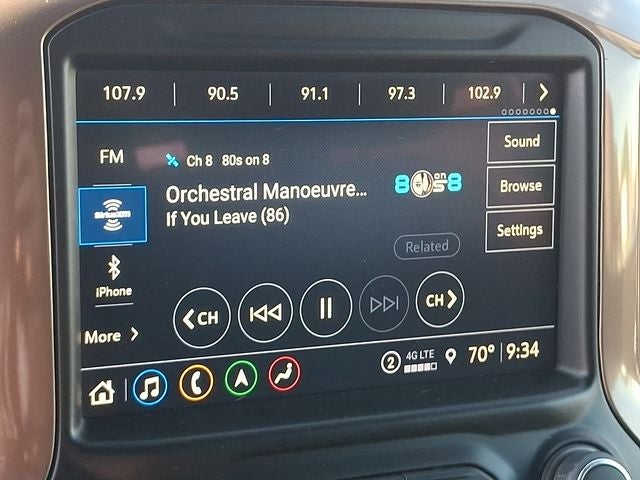 - Audio system, Chevrolet Infotainment 3 Premium system with connected Navigation 8" diagonal HD color touchscreen, AM/FM stereo, Bluetooth® audio streaming for 2 active devices, wireless Apple CarPlay and Android Auto capable, enhanced voice recognition, additional memory for in-vehicle apps, cloud connected personalization for select infotainment and vehicle settings. Subscription required for enhanced and connected services after trial period. (Includes (PZ8) High Guidance with Hitch View.)