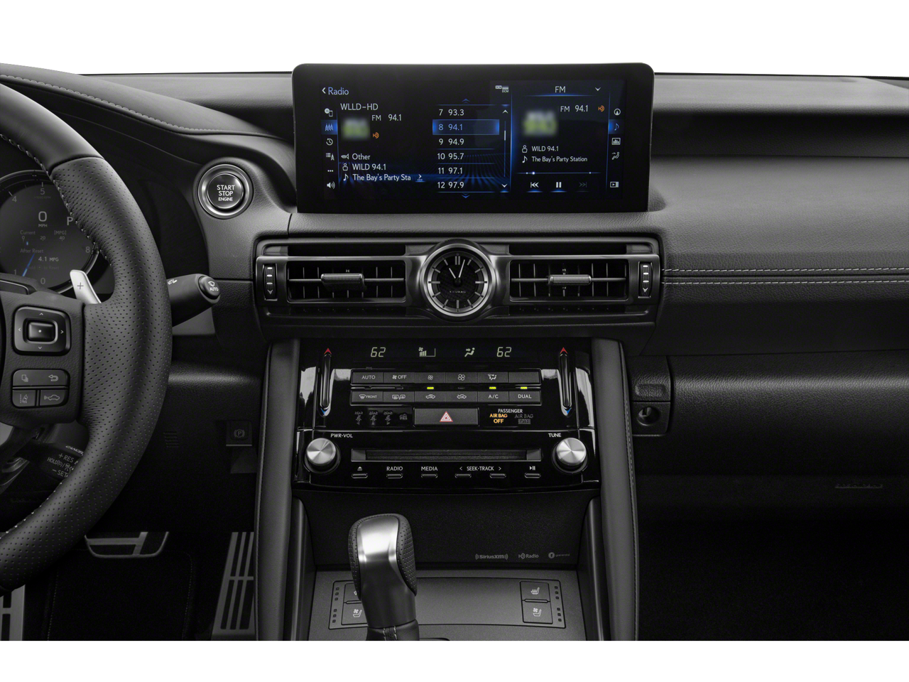 This Vehicle Includes the Following Options: Memory Package (Lexus Memory System for Driver's Seat, Outside Mirrors w/Auto Tilt-Down in Reverse, and Power Tilt & Telescoping Steering Wheel), Navigation Package, Black Artificial Leather, 10 Speakers, 19 Wheels, 4-Wheel Disc Brakes, ABS brakes, Air Conditioning, Alloy wheels, AM/FM radio: SiriusXM, Apple CarPlay/Android Auto, Auto High-beam Headlights, Auto-dimming door mirrors, Auto-dimming Rear-View mirror, Automatic temperature control, Brake assist, Bumpers: body-color, Cargo Net, Carpet Trunk Mat, CD player, Compass, Delay-off headlights, Driver door bin, Driver vanity mirror, Dual front impact airbags, Dual front side impact airbags, Electronic Stability Control, Emergency communication system: Safety Connect (3-year trial), Exterior Parking Camera Rear, Four wheel independent suspension, Front anti-roll bar, Front Bucket Seats, Front Center Armrest, Front dual zone A/C, Front fog lights, Front reading lights, Fully automatic headlights, Garage door transmitter: HomeLink, Heated & Ventilated F SPORT Seats, Heated door mirrors, Heated front seats, Heated steering wheel, Illuminated entry, Intuitive Park Assist w/RCTB & PVM, Key Gloves, Knee airbag, Leather Shift Knob, Low tire pressure warning, Moonroof, Occupant sensing airbag, Outside temperature display, Overhead airbag, Overhead console, Panic alarm, Passenger door bin, Passenger vanity mirror, Perforated NuLuxe Seat Trim, Power door mirrors, Power driver seat, Power passenger seat, Power steering, Power windows, Radio data system, Radio: Multimedia System w/8 Color Touchscreen, Rain sensing wipers, Rear anti-roll bar, Rear Bumper Applique, Rear reading lights, Rear seat center armrest, Rear side impact airbag, Rear window defroster, Remote keyless entry, Security system, Speed control, Speed-sensing steering, Speed-Sensitive Wipers, Split folding rear seat, Spoiler, Sport steering wheel, Steering wheel mounted audio controls, Tachometer, Telescoping steering wheel, Tilt steering wheel, Traction control, Trip computer, Turn signal indicator mirrors, Variably intermittent wipers, Ventilated front seats, and Wheel Bolt Locks.