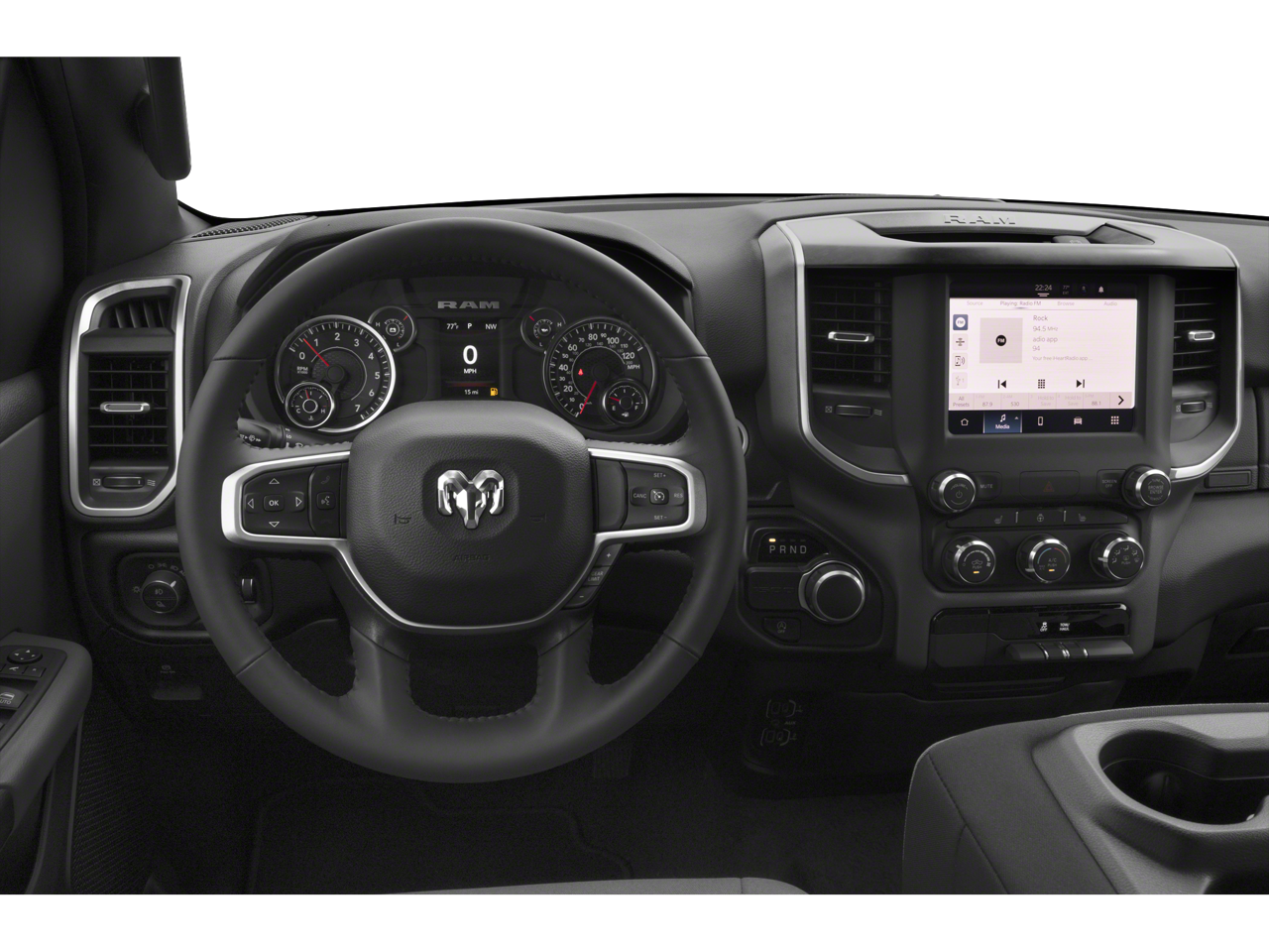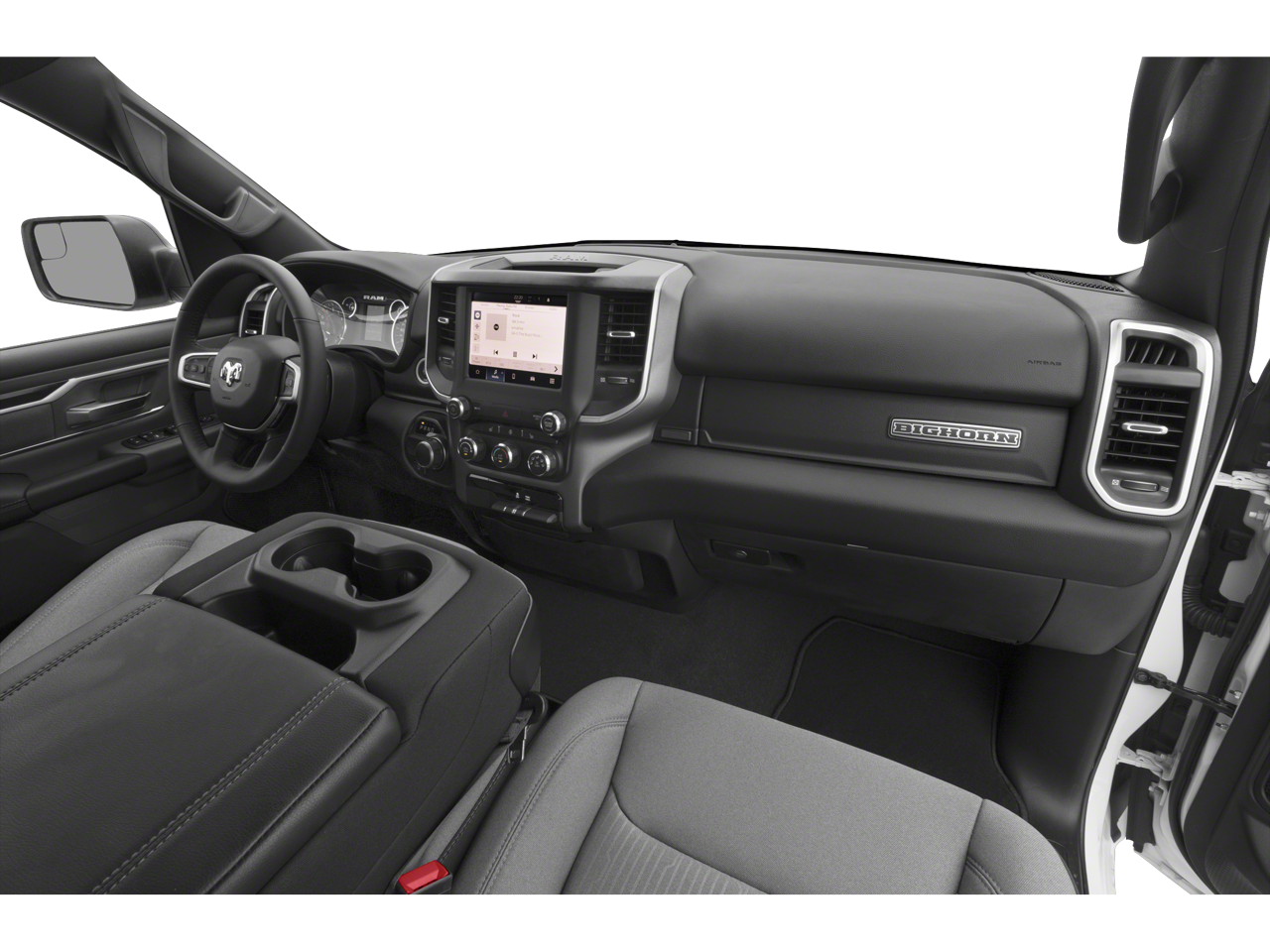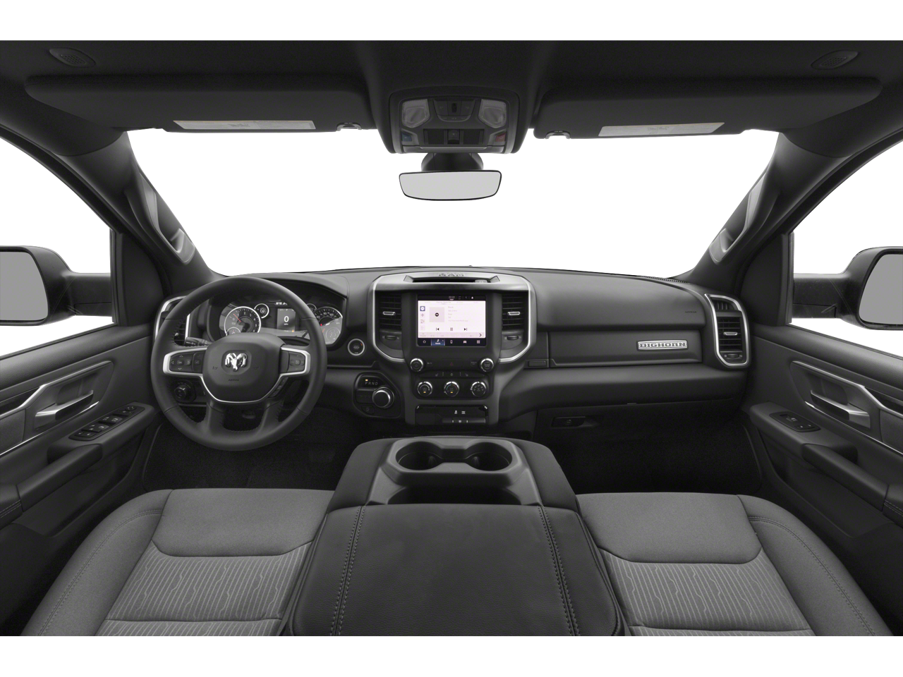 This Vehicle Includes the Following Options: Big Horn Level B Equipment Group (115V Auxiliary Power Outlet, 12 Touchscreen Display, 400W Inverter, 4G LTE Wi-Fi Hot Spot, 9 Amplified Speakers w/Subwoofer, Air Conditioning ATC w/Dual Zone Control, All R1 High Radios, All Radio Equipped Vehicles, Apple CarPlay, Auto-Dimming Exterior Driver Mirror, Auto-Dimming Rear-View Mirror, Black Exterior Mirrors, Black Premium Power Mirrors, Class IV Receiver Hitch, Cluster 7.0 TFT Color Display, Connected Travel & Traffic Services, Connectivity - US/Canada, Convex Wide-Angle Mirror Insert, Disassociated Touchscreen Display, Exterior Mirrors Courtesy Lamps, Exterior Mirrors w/Heating Element, Exterior Mirrors w/Supplemental Signals, For Details, Visit DriveUconnect.com, For More Info, Call 800-643-2112, Front Fog Lamps, Glove Box Lamp, Google Android Auto, GPS Antenna Input, GPS Navigation, HD Radio, Heated Front Seats, Heated Steering Wheel, Integrated Center Stack Radio, Integrated Voice Command w/Bluetooth®, LED Footwell Lighting, Media Hub w/2 Charge Only USBs, ParkSense Front/Rear Park Assist w/Stop, Power 2-Way Driver Lumbar Adjust, Power 8-Way Driver Seat, Power Adjustable Pedals, Power-Folding Mirrors, Radio: Uconnect 5 Nav w/12.0 Display, Rear Dome w/On/Off Switch Lamp, Rear Power Sliding Window, Rear Window Defroster, Remote Start System, Security Alarm, SiriusXM Radio Service, SiriusXM Satellite Radio, SiriusXM w/360L, Sun Visors w/Illuminated Vanity Mirrors, Universal Garage Door Opener, and USB Host Flip), Night Edition (3 Rear Seat Head Restraints, 4 Way Front Headrests, Accent Color Door Handles, Accent Color Premium Power Mirrors, Anti-Spin Differential Rear Axle, Black Exterior Truck Badging, Black Headlamp Bezels, Black Interior Accents, Black Painted Exterior Mirrors Caps, Body Color Front Bumper, Body Color Rear Bumper w/Step Pads, Bucket Seats, Center Console Parts Module, Deluxe Cloth Bucket Seats, Dual Exhaust w/Black Tips, Front Seat Back Map Pockets, Full Length Floor Console, Grille Surround 1 Black Texture 2 Black, Manual Adjust 4-Way Front Passenger Seat, RAM Grille Badge - Black, Rear 60/40 Folding Seat, and Wheels: 20 x 9.0 Premium Paint/Polished), Quick Order Package 23Z Big Horn (Big Horn Badge), 3.21 Rear Axle Ratio, 4-Wheel Disc Brakes, 48V Belt Starter Generator, 6 Speakers, ABS brakes, Air Conditioning, Alloy wheels, AM/FM radio, Brake assist, Bumpers: chrome, Cloth Bench Seat, Compass, Delay-off headlights, Driver door bin, Dual front impact airbags, Dual front side impact airbags, Electronic Stability Control, Emergency communication system: SiriusXM Guardian, Front anti-roll bar, Front Center Armrest w/Storage, Front reading lights, Front wheel independent suspension, Fully automatic headlights, Heated door mirrors, Illuminated entry, Leather steering wheel, Low tire pressure warning, MOPAR Front & Rear Rubber Floor Mats, Occupant sensing airbag, Outside temperature display, Overhead airbag, Overhead console, Panic alarm, ParkView Rear Back-Up Camera, Passenger door bin, Passenger vanity mirror, Power door mirrors, Power steering, Power windows, Radio data system, Radio: Uconnect 3 w/5 Display, Rear anti-roll bar, Rear seat center armrest, Rear step bumper, Remote keyless entry, Speed control, Split folding rear seat, Steering wheel mounted audio controls, Tachometer, Telescoping steering wheel, Tilt steering wheel, Traction control, Trip computer, Variably intermittent wipers, Voltmeter, and Wheels: 18 x 8 Cast-Aluminum PainteD.