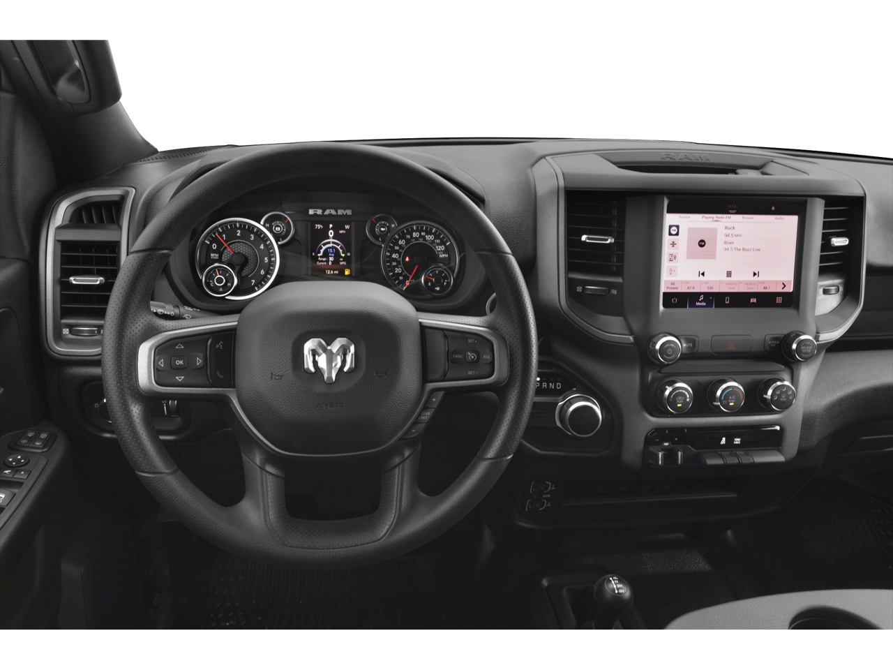 THIS VEHICLE INCLUDES THE FOLLOWING FEATURES AND OPTIONS: Chrome Appearance Group (Bright Front Bumper, Bright Rear Bumper, Center Hub, Chrome Grille Surround, Chrome Headlamp Bezels, Matte Black Mesh Grille w/Chrome, and Wheels: 18 x 8.0 Steel Chrome Clad), Protection Group (Tow Hooks), Quick Order Package 2GA Tradesman, Tradesman Level 1 Equipment Group (Manual Folding Exterior Mirrors and Manual Telescoping Mirrors), 17 x 7.5 Steel Styled Wheels, 2 Way Rear Headrest Seat, 3.73 Axle Ratio, 4 Way Front Headrests, 4-Wheel Disc Brakes, 40/20/40 Split Bench Seat, 6 Speakers, ABS brakes, Active Noise Control System, Air Conditioning, AM/FM radio, Anti-Spin Differential Rear Axle, Black Exterior Mirrors, Brake assist, Compass, Delay-off headlights, Driver door bin, Dual front impact airbags, Dual front side impact airbags, Electronic Stability Control, Electronically Controlled Throttle, Emergency communication system: SiriusXM Guardian, Front anti-roll bar, Front Center Armrest w/Storage, Front License Plate Bracket, Front reading lights, Fully automatic headlights, Global Telematics Box Module (TBM), GPS Antenna Input, Heavy Duty Vinyl 40/20/40 Split Bench Seat, Illuminated entry, Integrated Voice Command w/Bluetooth®, Low tire pressure warning, Manual Adjust 4-Way Driver Seat, MOPAR Spray In Bedliner, Occupant sensing airbag, Outside temperature display, Overhead airbag, Overhead console, ParkView Rear Back-Up Camera, Passenger door bin, Passenger vanity mirror, Power steering, Power windows, Radio data system, Radio: Uconnect 3 w/5 Display, Rear anti-roll bar, Rear Folding Seat, Rear step bumper, SiriusXM Radio Service, Speed control, Storage Tray, Tachometer, Tilt steering wheel, Tip Start, Traction control, Trailer Brake Control, Trailer Light Check, Variably intermittent wipers, and Voltmeter.