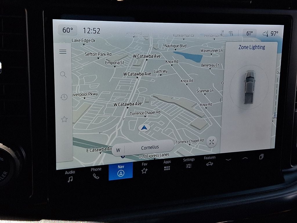 THIS VEHICLE INCLUDES THE FOLLOWING FEATURES AND OPTIONS: Equipment Group 501A Standard, FX4 Off-Road Package (4x4 FX4 Off-Road Bodyside Decal, Hill Descent Control, Monotube Rear Shocks, Off-Road Tuned Front Shock Absorbers, and Rock Crawl Mode), 4WD, 4-Wheel Disc Brakes, 8 Speakers, ABS brakes, Adjustable pedals, Air Conditioning, Alloy wheels, AM/FM radio: SiriusXM with 360L, Auto High-beam Headlights, Auto-dimming door mirrors, Auto-dimming Rear-View mirror, Automatic temperature control, Brake assist, Bumpers: chrome, Chrome wheels, Compass, Delay-off headlights, Driver door bin, Driver vanity mirror, Dual front impact airbags, Dual front side impact airbags, Electronic Stability Control, Emergency communication system: SYNC 4 911 Assist, Front anti-roll bar, Front Bucket Seats, Front Center Armrest, Front dual zone A/C, Front fog lights, Front reading lights, Front wheel independent suspension, Fully automatic headlights, Garage door transmitter, Heated door mirrors, Heated front seats, Heated steering wheel, Illuminated entry, Leather-Trimmed Bucket Seats, LED Sideview Mirror Spotlights, Low tire pressure warning, Memory seat, Navigation system: Connected Navigation, Occupant sensing airbag, Outside temperature display, Overhead airbag, Overhead console, Panic alarm, Passenger door bin, Passenger vanity mirror, Pedal memory, Power door mirrors, Power driver seat, Power passenger seat, Power steering, Power windows, Radio data system, Radio: B&O Sound System by Bang & Olufsen, Rain sensing wipers, Rear reading lights, Rear seat center armrest, Rear step bumper, Rear window defroster, Remote keyless entry, Security system, Speed control, Split folding rear seat, Steering wheel mounted audio controls, SYNC 4 w/Enhanced Voice Recognition, Tachometer, Telescoping steering wheel, Tilt steering wheel, Traction control, Trip computer, Turn signal indicator mirrors, Variably intermittent wipers, Ventilated front seats, Voltmeter, and Wheels: 20 Chrome-Like PVD.