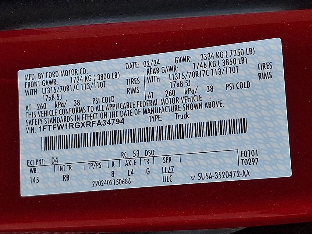 THIS VEHICLE INCLUDES THE FOLLOWING FEATURES AND OPTIONS: Equipment Group 801A Standard, 4WD, 14 Speakers, 17 Cast Aluminum Wheels, 4-Wheel Disc Brakes, ABS brakes, Adaptive suspension, Adjustable pedals, Air Conditioning, Alloy wheels, AM/FM radio: SiriusXM with 360L, Auto High-beam Headlights, Auto tilt-away steering wheel, Auto-dimming door mirrors, Auto-dimming Rear-View mirror, Automatic temperature control, Brake assist, Bumpers: body-color, Compass, Delay-off headlights, Driver door bin, Driver vanity mirror, Dual front impact airbags, Dual front side impact airbags, Electronic Locking w/4.10 Axle Ratio, Electronic Stability Control, Emergency communication system: SYNC 4 911 Assist, Front anti-roll bar, Front Bucket Seats, Front Center Armrest, Front dual zone A/C, Front fog lights, Front License Plate Bracket, Front reading lights, Front wheel independent suspension, Fully automatic headlights, Garage door transmitter, Heads-Up Display, Heated door mirrors, Heated front seats, Heated rear seats, Heated steering wheel, Illuminated entry, Lane Departure Warning System, Leather Trim Seats, Low tire pressure warning, Memory seat, Navigation system: Connected Navigation, Occupant sensing airbag, Outside temperature display, Overhead airbag, Overhead console, Panic alarm, Passenger door bin, Passenger vanity mirror, Pedal memory, Power door mirrors, Power driver seat, Power passenger seat, Power steering, Power windows, Radio data system, Radio: B&O Unleashed Sound System by Bang & Olufsen, Rain sensing wipers, Rear reading lights, Rear step bumper, Rear window defroster, Remote keyless entry, Security system, Speed control, Speed-sensing steering, Split folding rear seat, Steering wheel memory, Steering wheel mounted audio controls, SYNC 4 w/Enhanced Voice Recognition, Tachometer, Telescoping steering wheel, Tilt steering wheel, Traction control, Trip computer, Turn signal indicator mirrors, Twin Panel Moonroof, Variably intermittent wipers, and Ventilated front seats.