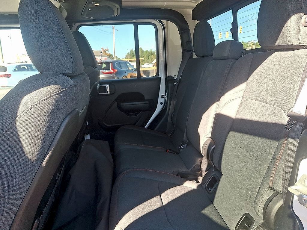 THIS VEHICLE INCLUDES THE FOLLOWING FEATURES AND OPTIONS: Quick Order Package 23R Rubicon, Quick Order Package 24R Rubicon, 12.3 Touchscreen Display, 4-Wheel Disc Brakes, 4.10 Rear Axle Ratio, 4G LTE Wi-Fi Hot Spot, 8 Speakers, 97 MPH Vehicle Max Speed Calibration, ABS brakes, Air Conditioning, Alexa Built-In, Alloy wheels, AM/FM radio: SiriusXM with 360L, Apple CarPlay, Apple CarPlay/Android Auto, Automatic temperature control, Black 3-Piece Hard Top, Brake assist, Cloth Low-Back Bucket Seats, Compass, Connectivity - US/Canada, Delay-off headlights, Driver door bin, Driver vanity mirror, Dual front impact airbags, Dual front side impact airbags, Electronic Stability Control, Emergency communication system: Jeep Connect, Freedom Panel Storage Bag, Front anti-roll bar, Front Bucket Seats, Front Center Armrest w/Storage, Front dual zone A/C, Front fog lights, Front reading lights, Fully automatic headlights, Google Android Auto, Heated door mirrors, Illuminated entry, Integrated Center Stack Radio, Integrated roll-over protection, Low tire pressure warning, MOPAR All-Weather Slush Mats, MOPAR Spray In Bedliner, Occupant sensing airbag, Outside temperature display, Overhead airbag, Panic alarm, Passenger door bin, Passenger vanity mirror, Performance Suspension, Power door mirrors, Power steering, Power windows, Radio data system, Radio: Uconnect 5 w/12.3 Display, Rear anti-roll bar, Rear reading lights, Rear Sliding Window, Rear Window Defroster, Remote keyless entry, Security system, SiriusXM Radio Service, SiriusXM w/360L, Speed control, Split folding rear seat, Steering wheel mounted audio controls, Tachometer, Telescoping steering wheel, Tilt steering wheel, Traction control, Trip computer, USB Host Flip, Variably intermittent wipers, Voltmeter, and Wheels: 17 x 7.5 Machined/Painted Black. Odometer is 6311 miles below market average!