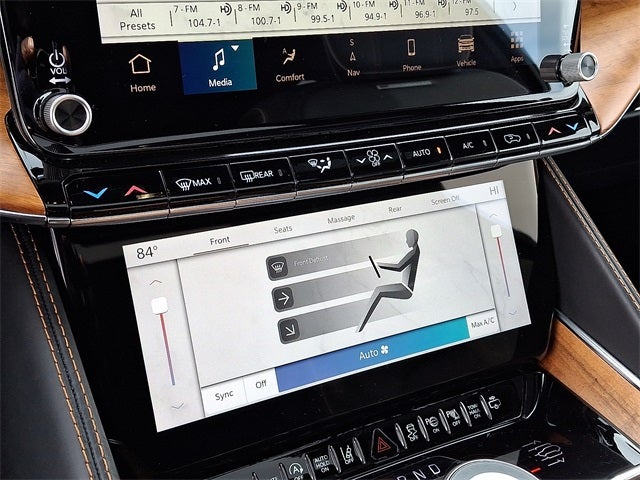 THIS VEHICLE INCLUDES THE FOLLOWING FEATURES AND OPTIONS: Two Tone Paint Group, 3.92 Rear Axle Ratio, 3rd row seats: bench, 4-Wheel Disc Brakes, ABS brakes, Adjustable pedals, Air Conditioning, Alloy wheels, AM/FM radio: SiriusXM with 360L, Anti-whiplash front head restraints, Apple CarPlay/Android Auto, Audio memory, Auto High-beam Headlights, Auto-dimming door mirrors, Auto-dimming Rear-View mirror, Auto-leveling suspension, Automatic temperature control, Brake assist, Bumpers: body-color, Compass, Delay-off headlights, Driver door bin, Driver vanity mirror, Driver's Seat Mounted Armrest, Dual front impact airbags, Dual front side impact airbags, Electronic Stability Control, Emergency communication system, Four wheel independent suspension, Front anti-roll bar, Front Bucket Seats, Front Center Armrest w/Storage, Front dual zone A/C, Front fog lights, Front reading lights, Fully automatic headlights, Garage door transmitter, Genuine wood console insert, Genuine wood dashboard insert, Genuine wood door panel insert, Heads-Up Display, Heated door mirrors, Heated front seats, Heated rear seats, Heated steering wheel, Illuminated entry, Knee airbag, Leather steering wheel, Low tire pressure warning, Memory seat, Navigation System, Night vision lights, Normal Duty Suspension, Occupant sensing airbag, Outside temperature display, Overhead airbag, Overhead console, Panic alarm, Passenger door bin, Passenger seat mounted armrest, Passenger vanity mirror, Pedal memory, Power adjustable front head restraints, Power door mirrors, Power driver seat, Power Liftgate, Power moonroof, Power passenger seat, Power steering, Power windows, Premium Leather Trimmed Bucket Seats, Radio data system, Radio: Uconnect 5 Nav w/12.0 Display, Rain sensing wipers, Rear air conditioning, Rear anti-roll bar, Rear dual zone A/C, Rear reading lights, Rear seat center armrest, Rear window defroster, Rear window wiper, Reclining 3rd row seat, Remote keyless entry, Roof rack, Security system, Speed control, Speed-sensing steering, Speed-Sensitive Wipers, Split folding rear seat, Steering wheel memory, Steering wheel mounted audio controls, Tachometer, Telescoping steering wheel, Tilt steering wheel, Traction control, Trip computer, Turn signal indicator mirrors, Variably intermittent wipers, Ventilated front seats, Ventilated rear seats, Voltmeter, and Wheels: 22 x 9.0 Premium 4 Aluminum.