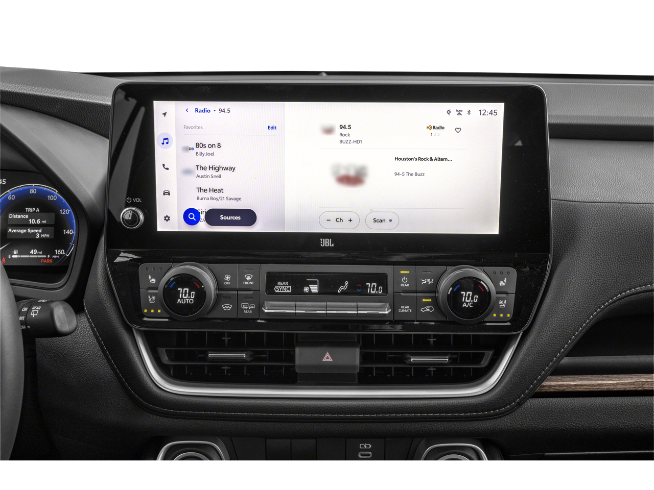- Radio: 12.3" Toyota Audio Multimedia w/JBL Premium -inc: 11 speakers, voice activated commands, dual Bluetooth® phone connectivity, wireless Apple CarPlay and Android Auto compatibility, HD Radio, USB and SiriusXM w/3-month platinum plan trial subscription