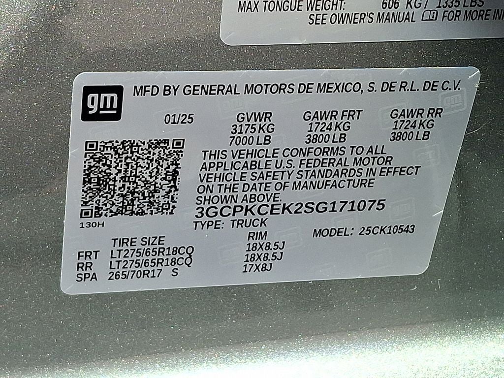 - Front Tire Size: LT275/65R18C