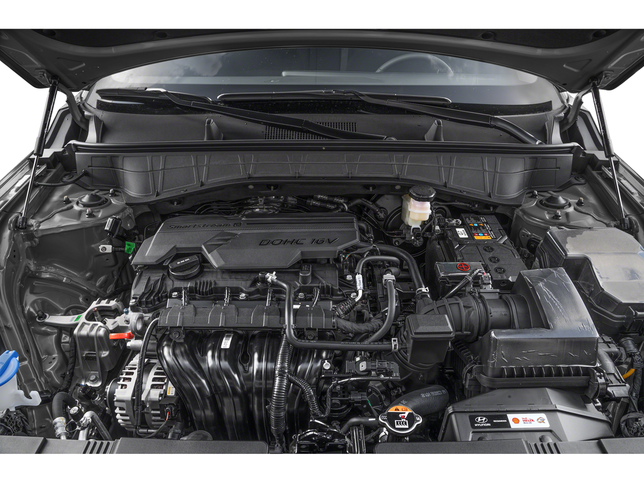 This Vehicle Includes the Following Options: Option Group 01, 4-Wheel Disc Brakes, 6 Speakers, ABS brakes, Air Conditioning, Alloy wheels, AM/FM radio: SiriusXM, Apple CarPlay & Android Auto, Auto High-beam Headlights, Automatic temperature control, Brake assist, Bumpers: body-color, Cloth Seat Trim, Delay-off headlights, Driver door bin, Driver vanity mirror, Dual front impact airbags, Dual front side impact airbags, Electronic Stability Control, Emergency communication system: Bluelink+, Exterior Parking Camera Rear, Four wheel independent suspension, Front anti-roll bar, Front Bucket Seats, Front Center Armrest, Front dual zone A/C, Front reading lights, Fully automatic headlights, Heated door mirrors, Illuminated entry, Leather steering wheel, Low tire pressure warning, Occupant sensing airbag, Outside temperature display, Overhead airbag, Panic alarm, Passenger door bin, Passenger vanity mirror, Power door mirrors, Power driver seat, Power steering, Power windows, Radio: AM/FM/HD Radio/SiriusXM Audio System, Rear anti-roll bar, Rear seat center armrest, Rear window defroster, Rear window wiper, Remote keyless entry, Security system, Speed control, Speed-sensing steering, Split folding rear seat, Spoiler, Steering wheel mounted audio controls, Tachometer, Telescoping steering wheel, Tilt steering wheel, Traction control, Trip computer, Turn signal indicator mirrors, Variably intermittent wipers, and Wheels: 18 x 7.0J Glossy Black Alloy.